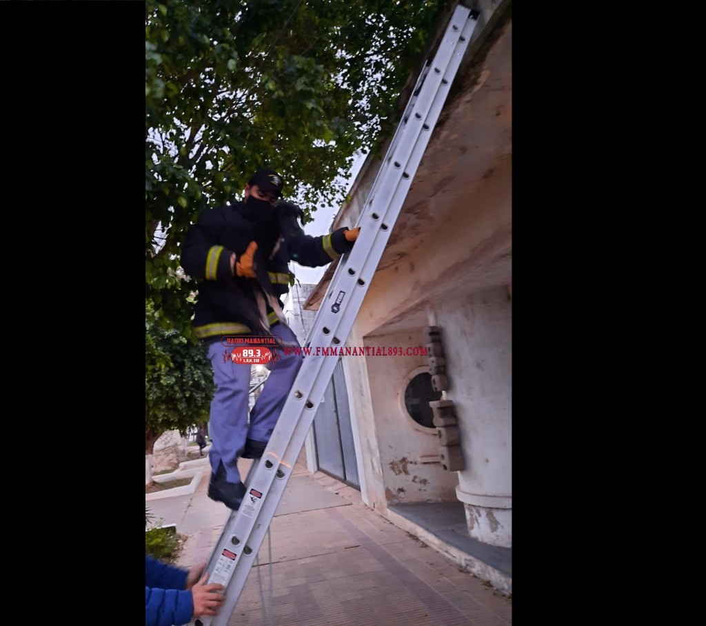 En la tarde del miércoles 16 de Junio del 2021 el personal de la División de Bomberos es alertado mediante llamado de un hecho que sucedía en calle San Martín, en donde un perro se encontraba arriba de un techo.