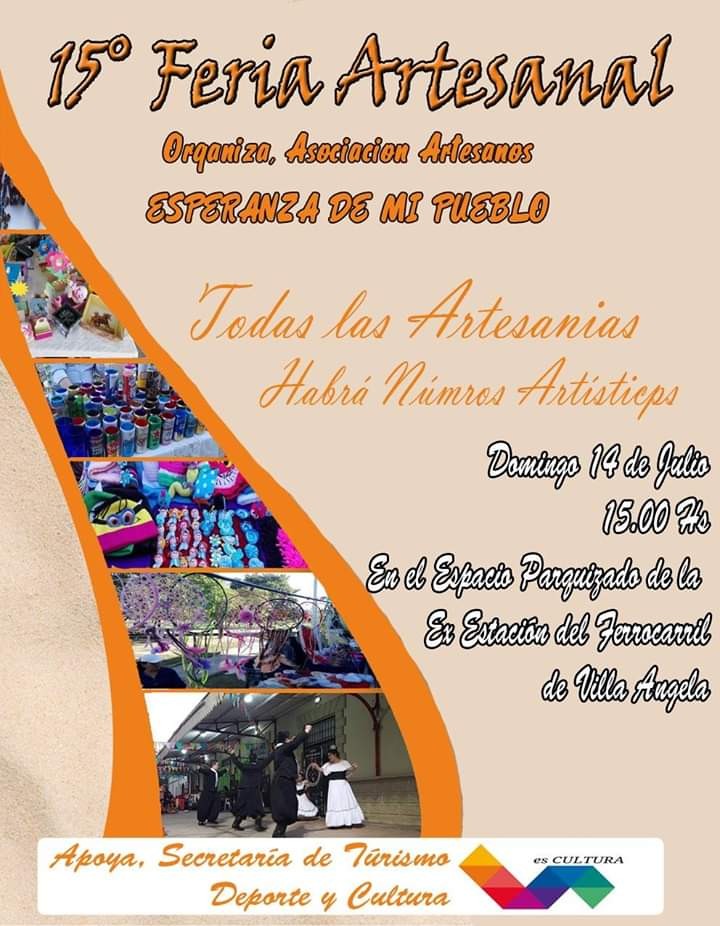 El día de hoy, se realizará la 15° Feria Artesanal, organizada por la Asociación de Artesanos “Esperanza de mi Pueblo”.