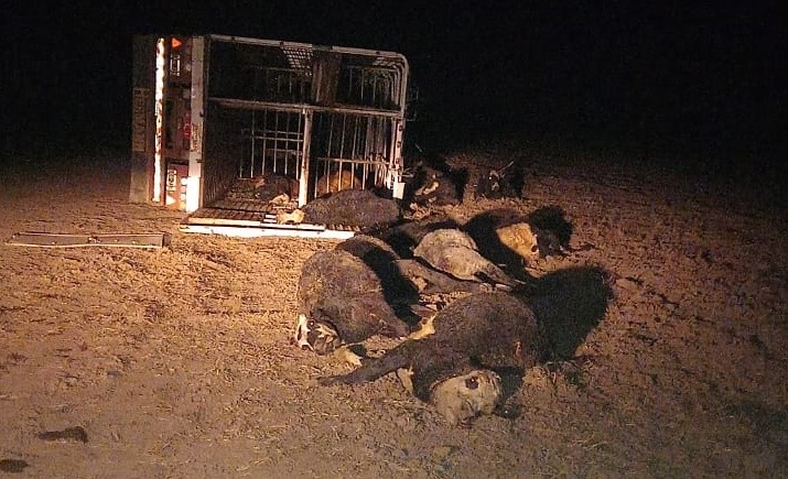 Colonia el Urunday: UN CAMIÓN VUELCA CON 100 ANIMALES VACUNOS EN DONDE MUEREN 21 Y SE ESCAPAN 64 A LA ZONA RURAL