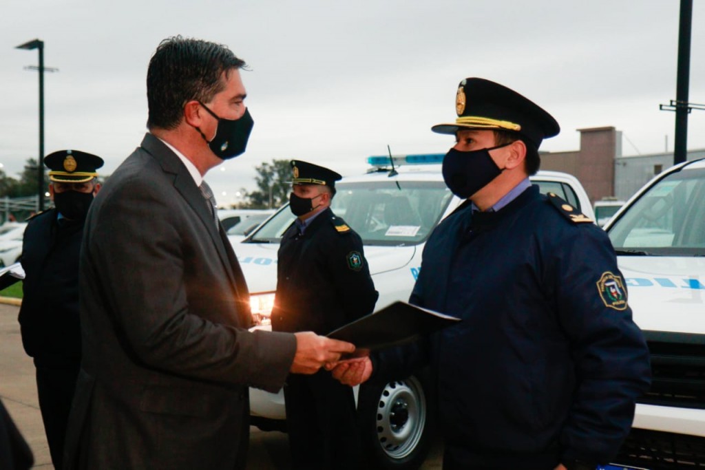 Se trata de 98 agentes y 85 oficiales que finalizaron la etapa de formación en el Instituto de Educación Superior de Formación Policial y Seguridad Pública y en la Escuela del Servicio Penitenciario. Además entregó los vehículos policiales a las comisarías del Área Metropolitana.