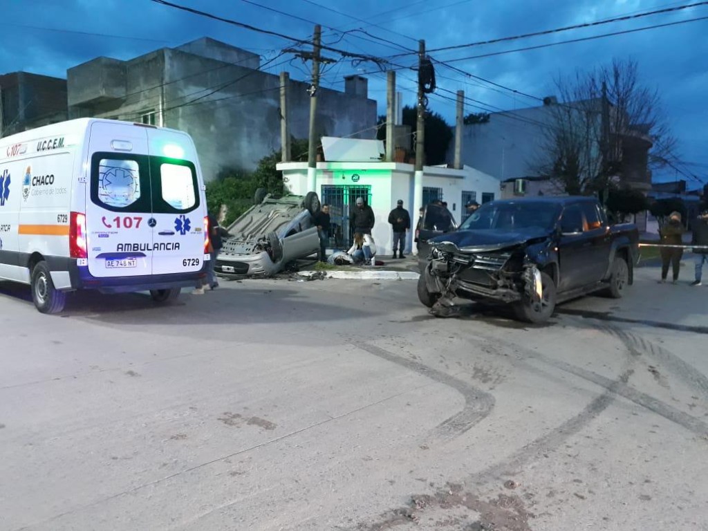Resistencia: Chocaron contra una camioneta, perdieron el control y volcaron: hay tres personas heridas