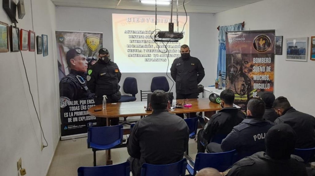 "En lo que refiere a los explosivos, el curso es hoy y mañana. Pero también se va que hacer un curso de incendios forestales, curso de incendios estructurales, curso de rescate en altura, en agua y también se hará un curso de materiales peligrosos. Son 10 personas que reciben el curso, 5 bomberos en Charata y 5 bomberos de acá" dijo Duré.