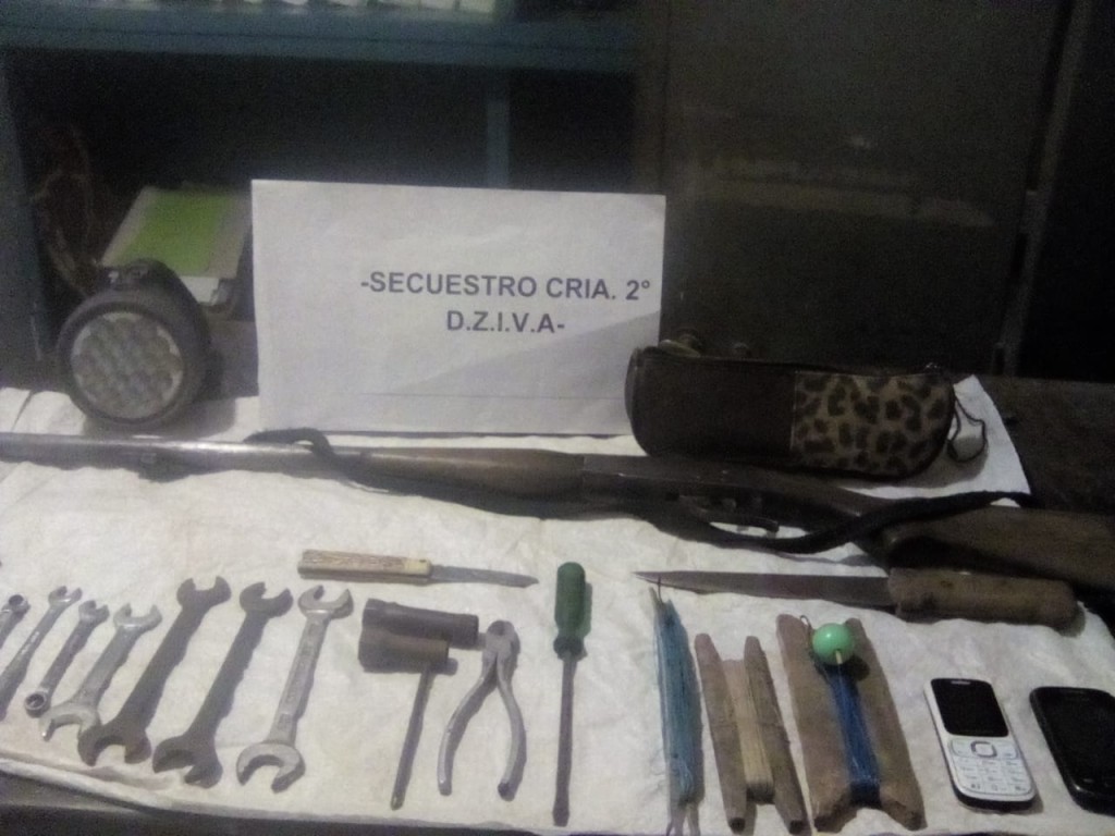 Entre los elementos había, una escopeta, cuchillos y herramientas.