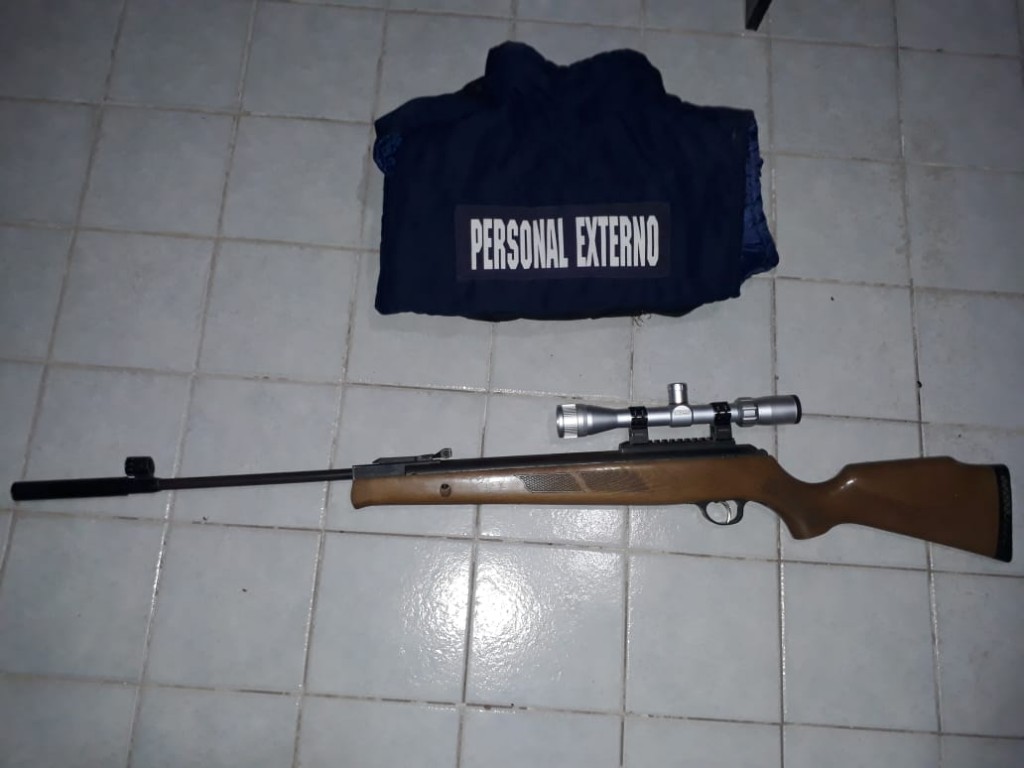 Uno de ellos poseía en sus manos un aire comprimido marca Fox, calibre 22 de color marrón, con mira telescópica marca Simmons de color Gris.
