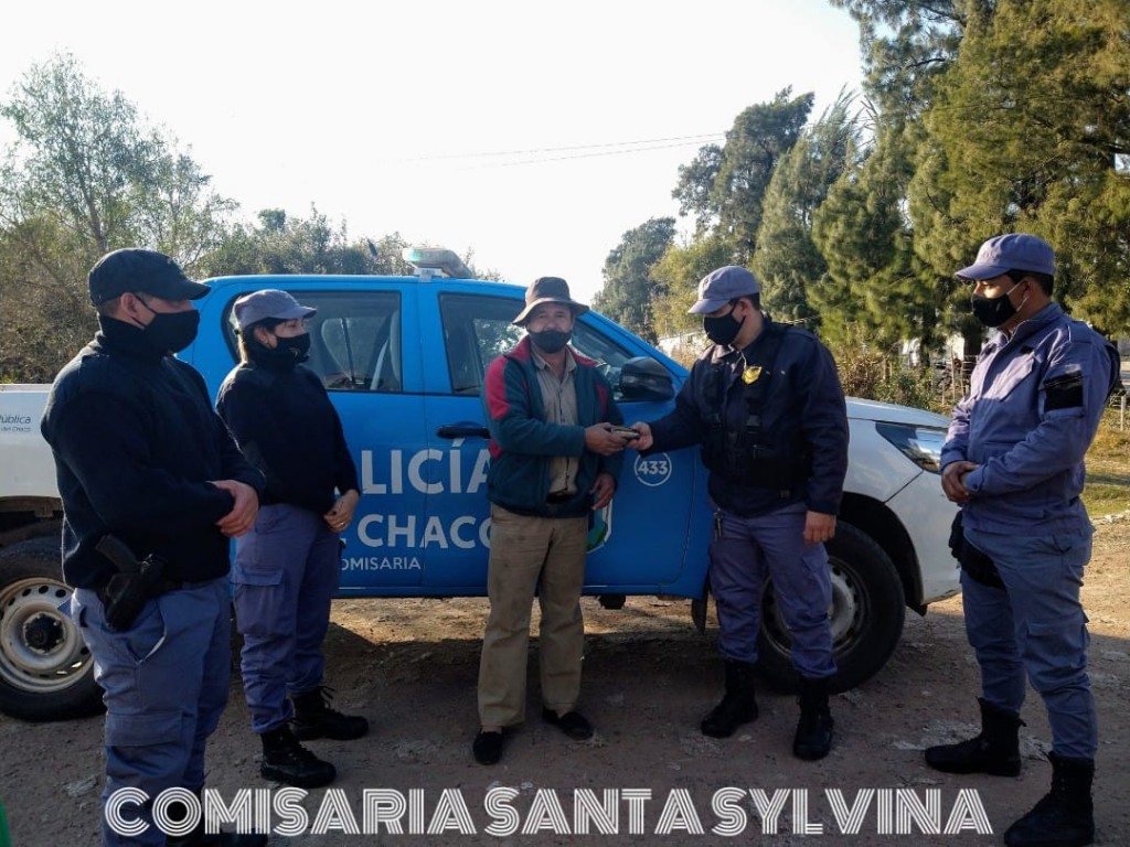 En la mañana del viernes, el personal del servicio externo de la guardia Ordinaria de la Comisaría de Santa Sylvina, al estar realizando recorridas de prevención en cercanías de la Plazoleta “Héroes de Malvinas”, entre Av. Leandro Alem y Av. Pueyrredón, divisa sobre la vía pública una billetera de cuero, color marrón, conteniendo en su interior, documentaciones varias y la suma de Once mil Quinientos Pesos, ($ 11.500), discriminados en distintos valores, que al cotejar a quien pertenecía, se logra establecer que sería L. O. M. de 50 años, de esa localidad, a quien se le hizo entrega del dinero en efectivo y de las documentaciones de su propiedad, recepcionando de conformidad, demostrando su gratitud hacia el personal Policial.