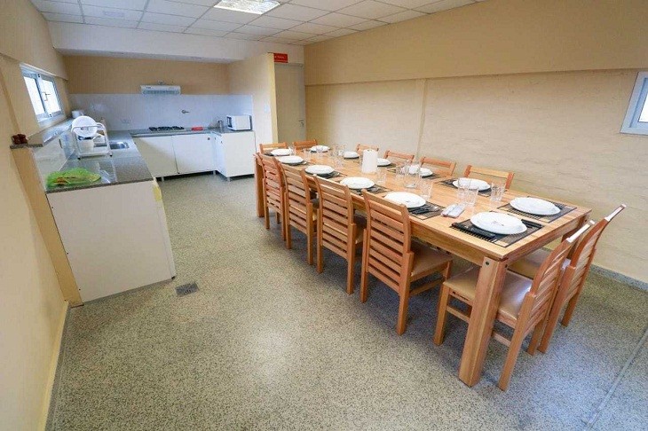 El albergue cuenta con capacidad de 12 camas con almohadas y ropa de cama nueva, tres dormitorios con aire acondicionado tipo split frío/calor; baños con tres boxes de inodoros y dos duchas; cocina-comedor con anafe, microondas, heladera, vajillas, TV LED, aire acondicionado tipo split frío/calor, mesa y sillas para 12 personas con sillón de estar.