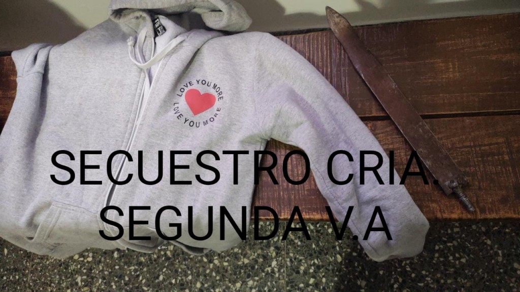 Se constituye la prevención y se entrevistan con L. A. S. de 17 años, quien adujo estar circulando a pie por calles Los Quebrachos y Av. Cuenca, cuando es sorprendido por tres sujetos masculino quienes vestían buzos con capuchas, uno de ellos extrae de sus prendas de vestir un cuchillo y lo apoya en su cuello, con el cual amenaza en hacerle daño si no entregaba sus camperas, a lo que este accede a lo peticionado y entrega sus prendas de vestir, una campera de color gris, una campera de color azul.