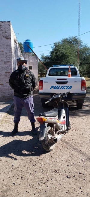 Este viernes 30 julio, el Departamento de Seguridad Rural Villa Ángela, a cargo del Comisario Inspector, José Luis Muñoz, recupero una moto que fue hallada en un caminos vecinal de Colonia Juan José Paso, oculta entre pastizales.